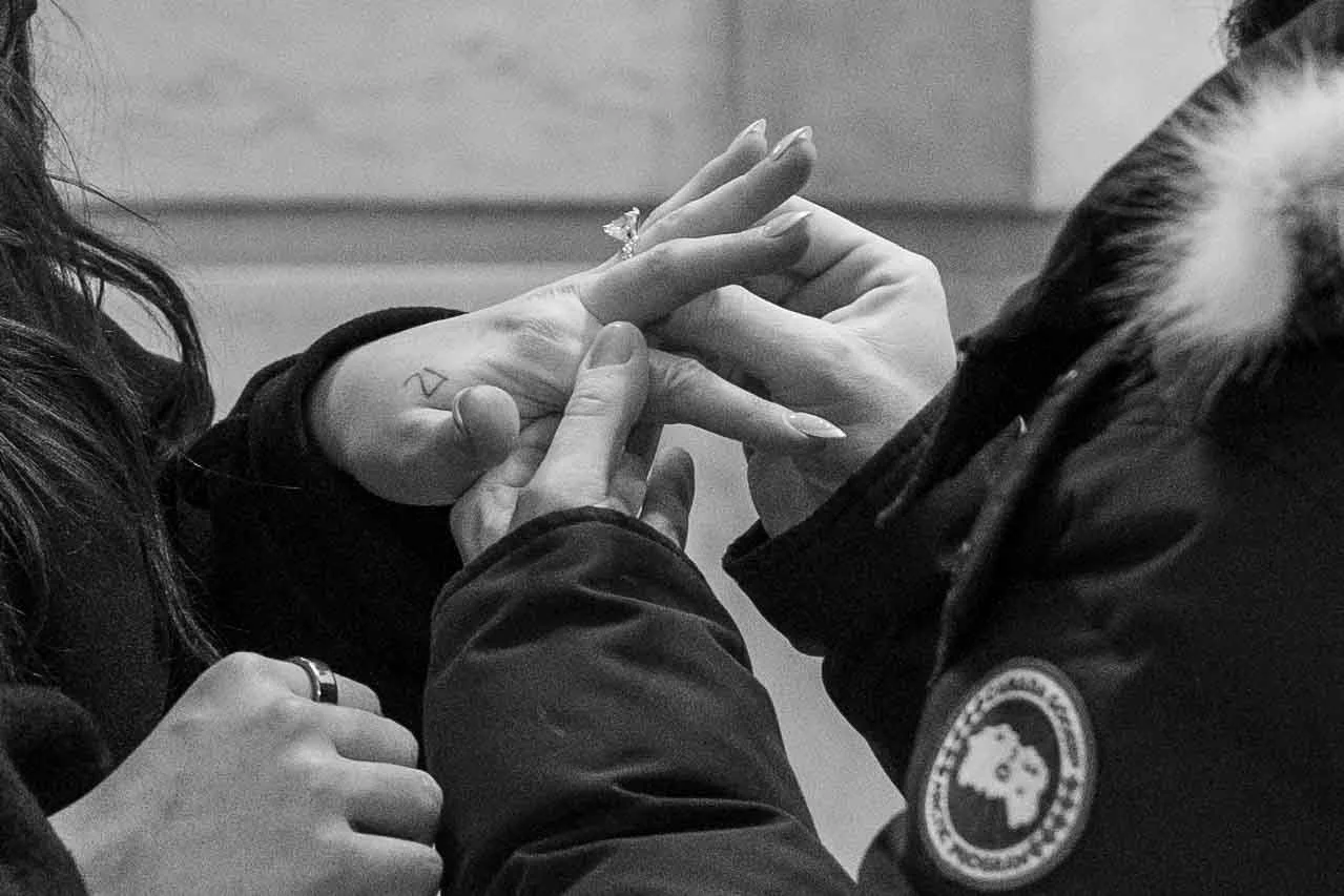 I shoot continuously through the entire sequence to capture every micro expression. After the “yes,” we transition seamlessly into a mini engagement session right there on the steps, along the balustrades, and sometimes inside nearby landmarks for variety.